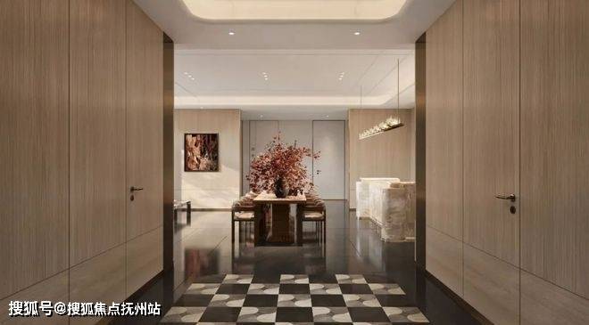 设计师以“莲”为魂,将东方文化中的“十三礼制”融入现代建筑语言,打造出「十三折屏扇莲庭」。归家门庭沿街展面气势恢宏,采用圣罗兰奢石、白雪公主透光玉石、玉曼米黄大理石、幻影蓝花岗岩,精心打造业主归家动线。