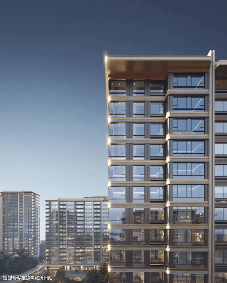 建筑立面选材兼顾未来感与品质感,采用Low-E中空玻璃保障通透视野,搭配贝金米黄铝板,以现代工艺勾勒简洁利落的线条;局部嵌入深灰色金属格栅与科技感灯带,既强化层次,又呼应未来科技城的科创基因,实现“未来形态,质感表达”。