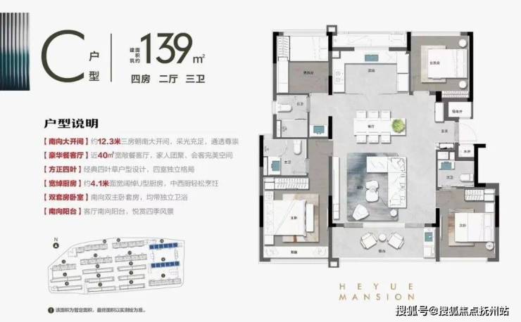 入四叶草户型,它的南向尺度拉大到了约12.3米,因此拥有了超宽幅的大客厅,整个客餐厅空间达到了近40㎡!约139㎡户型还有一个很大的亮点,设计了双主卧套房!南向两个卧室均带独立卫生间,整个户型拥有3个卫生间。