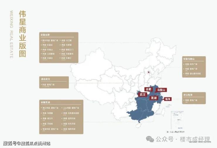 伟星商业已布局合肥、武汉、芜湖、马鞍山、临海等重点城市,商业业态涉及综合体、街区、酒店、写字楼、公寓等多种类型,至今已成功运营30个商业项目,220余万㎡。其中 80%商业自持运营,集合 2000+战略合作品牌,实现了房产和商业的双轮驱动。