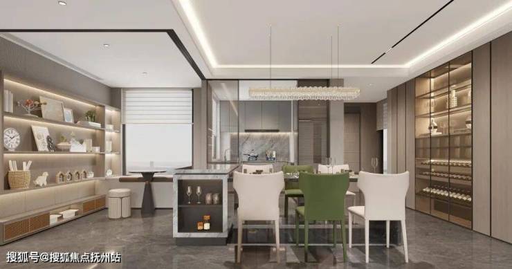 整体采用现代中式的风格,以“书香门第,儒雅文化”的设计思路,采用超大窗墙比,体量划分舒展、轻盈,辅以金属,玻璃,石材和铝板一体板等材料,强化高端公建化的立面形象,形成精致的高定人居体验。