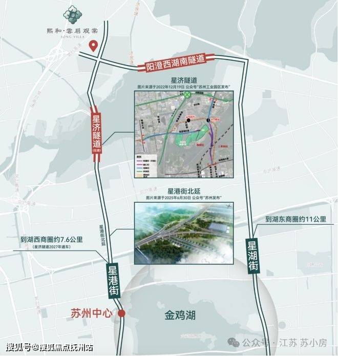 更值得注意的是,它不再是单纯的居住区,而是一座兼具城市能级与生活氛围的新城样本。项目距离湖西商圈约7.6公里,到湖东商圈约11公里,凭借在建的星济隧道(2027年通车)和阳澄西湖南隧道,以及地铁8号线可丝滑链接园区核心。