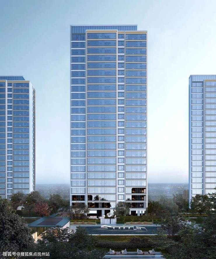 设计强调公建化建筑立面设计,通过顶部退台的处理,形成高低错落的滨江地标建筑形象。