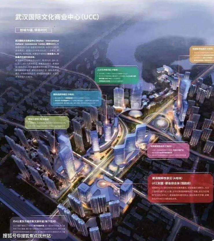 UCC武汉国际文化商业 ,总建面约295万方恢弘体量,集都会悦汇区、国际悦奢区、潮流悦享区、时尚悦品区、临湖悦居区、人文悦艺区6大功能板块于一体,填补汉阳商业板块空白,激活城市商业活力,完善城市功能配套,提升城市人居品质。