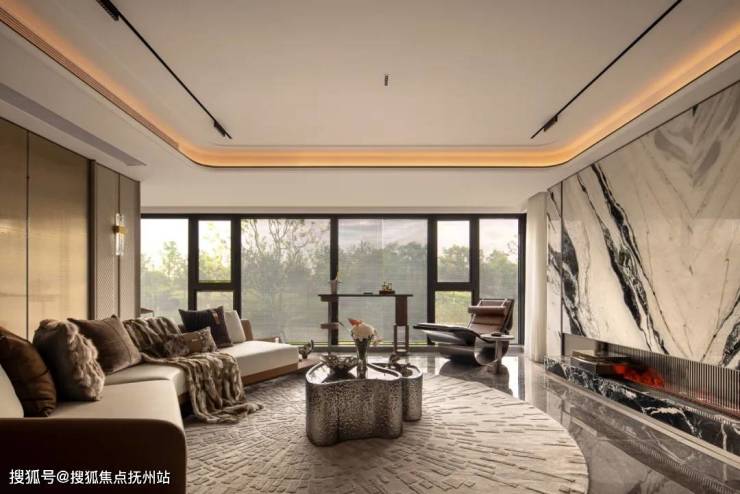 【好工艺】项目更通过艺术圆弧吊顶(仅大户型)、750*1500mm大规格地砖通铺、金属夹丝玻璃移门等精细化设计,营造大气、高级的视觉观感。