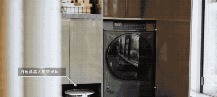 最为特别的是:全屋智能化友好空间设计!扫地机器人上下水点位、洗烘一体机、洗碗机等超15项科技点位提前预留,免去日后二度改造的繁琐。