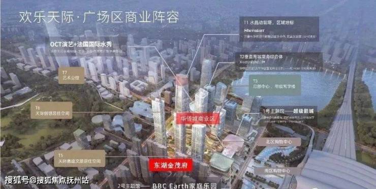 华侨城欢乐天际广场区面积约88万方,涵盖大型主题娱乐购物中心、休闲主题街区、高端公寓等多种丰富业态,目前已确定引入万豪旗下五星级喜来登酒店与万豪旗下的AC欧轩精品酒店,广场区一期预计2022年12月建成开放。