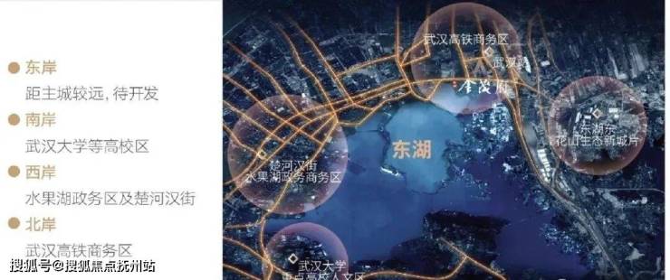 东湖—价值新中心:每一个城心湖区都是城市核心资源的聚集地,东湖作为武汉城心湖区,土地价值寸土寸金,而北岸依靠独特的区位优势及武汉站商务区规划红利,正成为城市价值新中心。