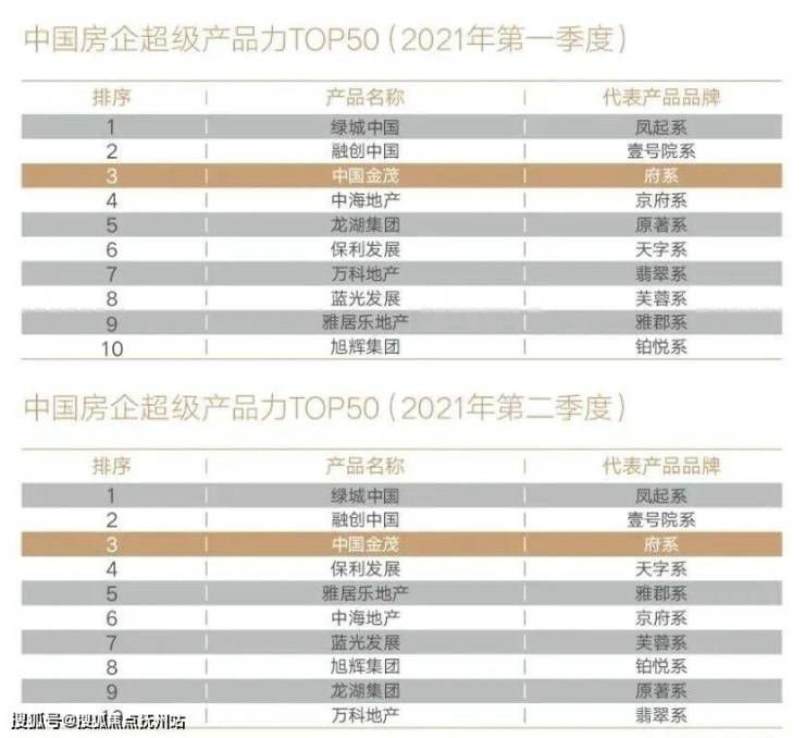 荣登2021年第一二季度中国房企超级产品力TOP3