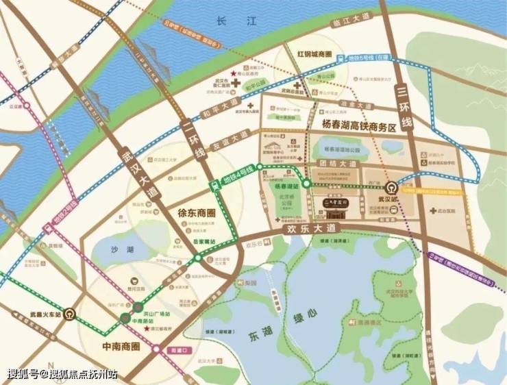 地铁:5轨交汇,已开通地铁4号线(项目横跨杨春湖站和武汉站),5号线(建设中)预计2021年开通,19号线(建设中),新港线(规划中),20号线(规划中)。