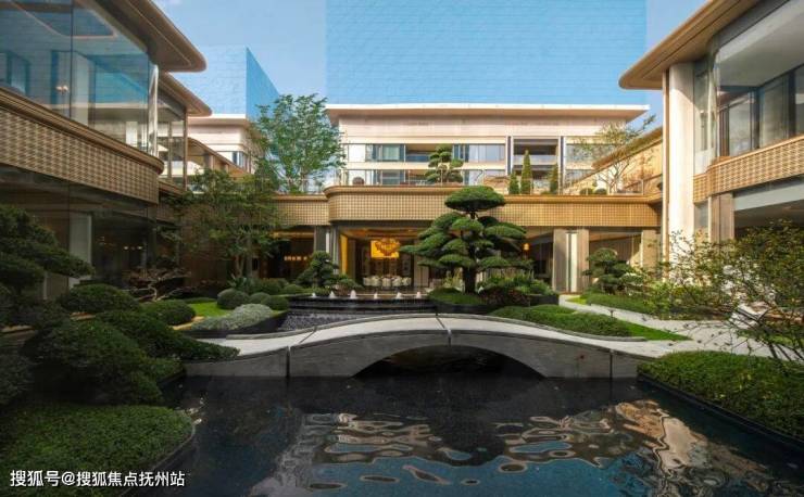 下沉式庭院,对标京都安缦的打造理念,将园林景观与室内空间呼应,形成隐于林间的奢华度假感。