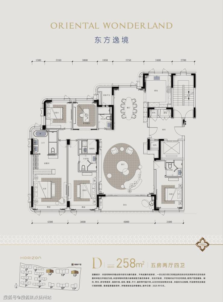 客厅、阳台尺度都非常阔绰,建面约258方户型超级客厅的面积达到近90方,中西餐厨一类的延展功能界面更优秀。