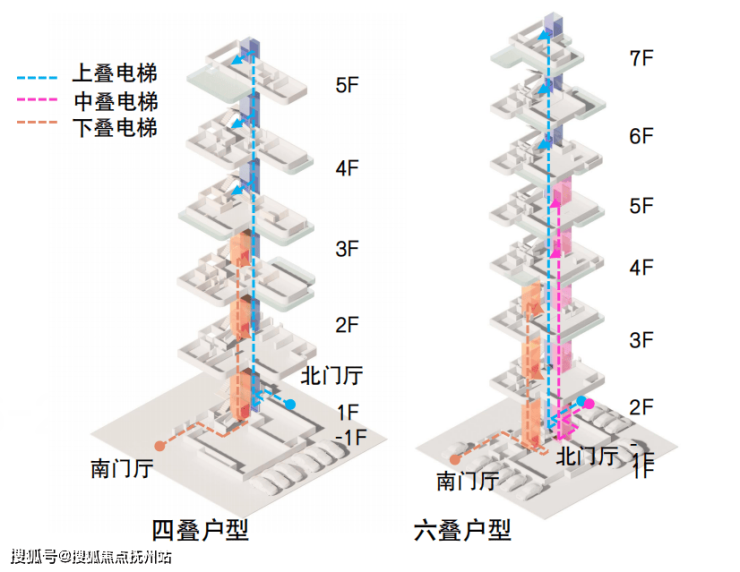值得一提的是,项目入户保证了足够的私密性:下叠南入户,室内交付有三菱电梯可便捷到达地下室和2楼;上、中叠均为北入户,但都是独立入户空间,相当于每户都拥有单独电梯,其各户电梯可直接到达自己家的每一层以及一楼和地下室。