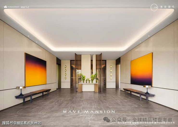 汽车坡道全石材敷设,马蹄石通铺,极大增加了地面耐磨性和行驶摩擦力,墙面全铝板包裹,尽显隐奢。坡道玄关铺设了星空顶,奥体潮鸣logo,配以定制的潮涌水波纹,专属于奥体潮鸣业主的归家仪式感立马就上来了。