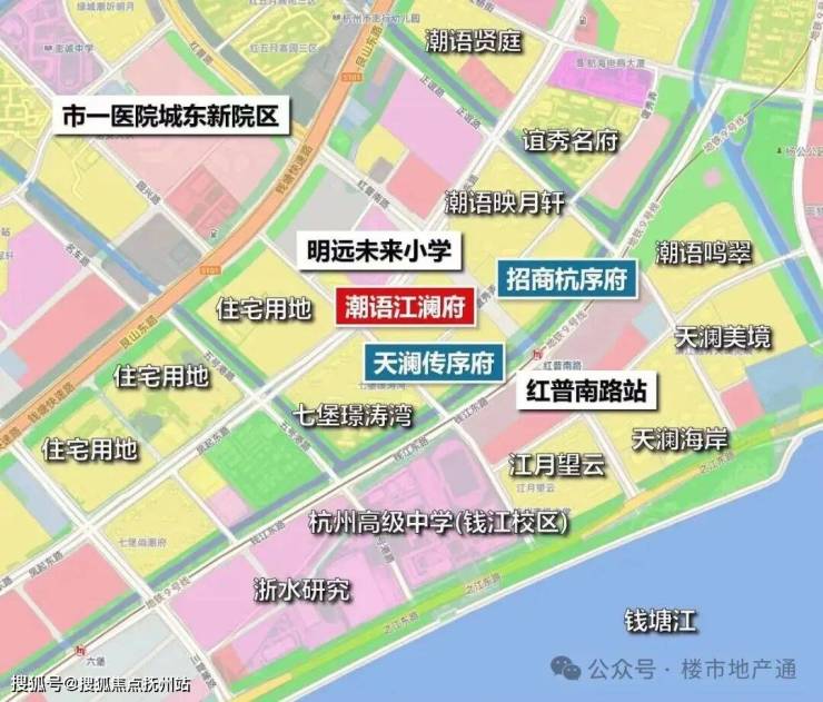地段介绍:大方向在钱江新城二期东侧,具体位置北侧是明远未来小学;西侧紧邻璟涛湾(20多层,回迁房规模不小);东侧就是招商杭序府(去化困难)、滨江潮语映月轩(已售罄),南侧是滨江天澜传序府(在售)