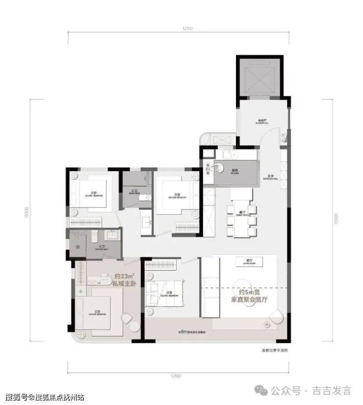 约5m家庭聚会宽厅 | 约23㎡私域主卧