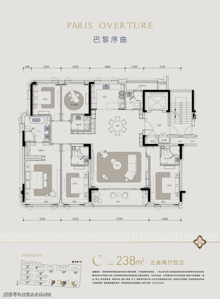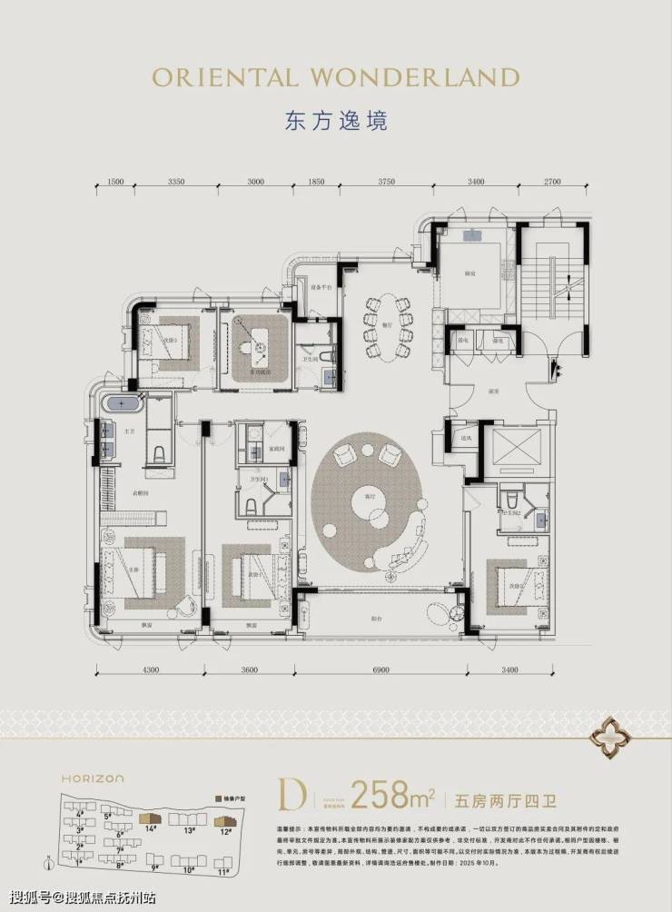 目前放出的高层户型图,建面约218方为5房2厅3卫,建面约238方/258方皆为5房2厅4卫!