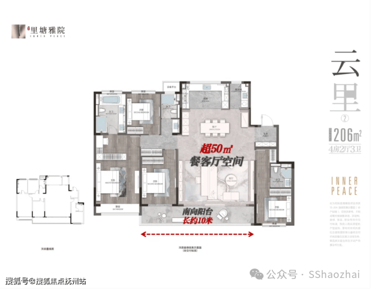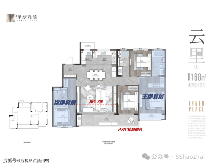 • 168-206㎡四开间洋房,四房三卫,大家庭改善舒适;