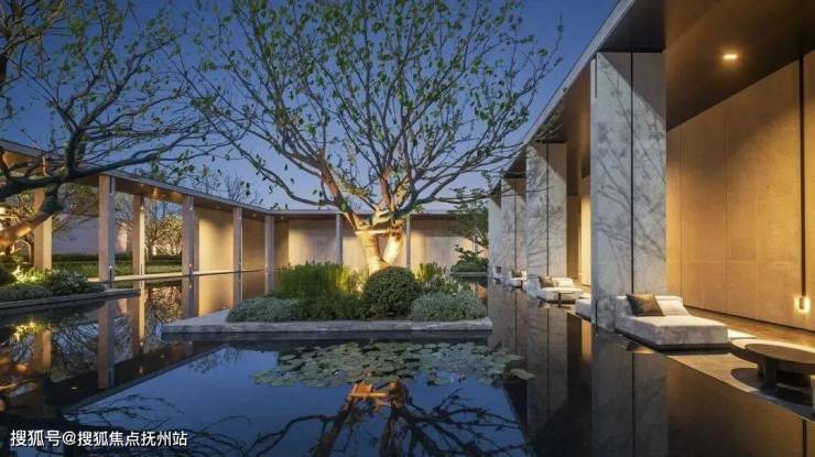 行与归,进与出,每一步都充满仪式感。艺境感:以自然共生理念,打造松弛精神角落我们穿过门庭,进来便是水院,多重镜面水系交织,映照无垠的天空倒影。