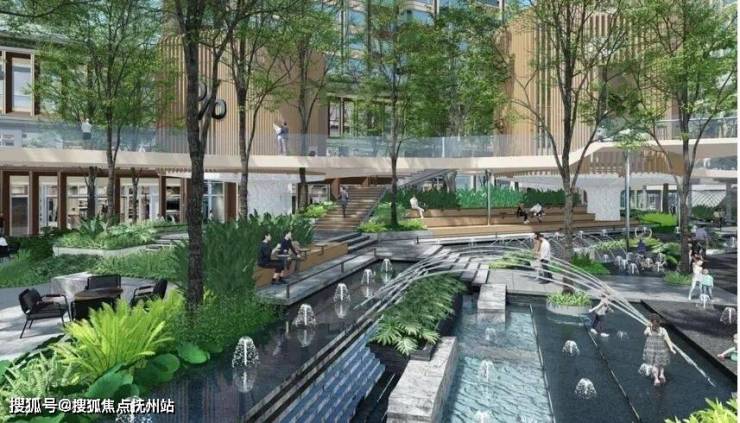 地面上还有可游玩、具有参与感的水景,比如森感公园有一个休闲戏水景观,彷佛走到欧洲罗马的大广场一样,气场十足。