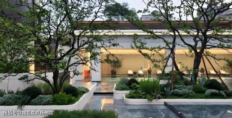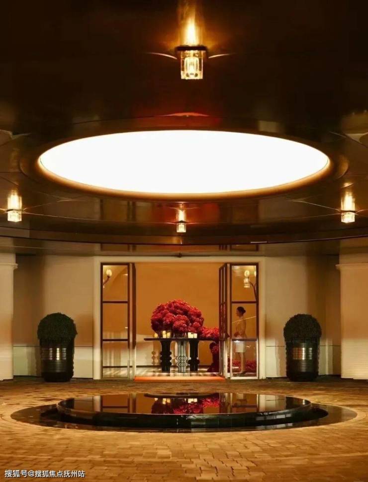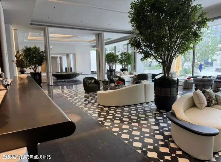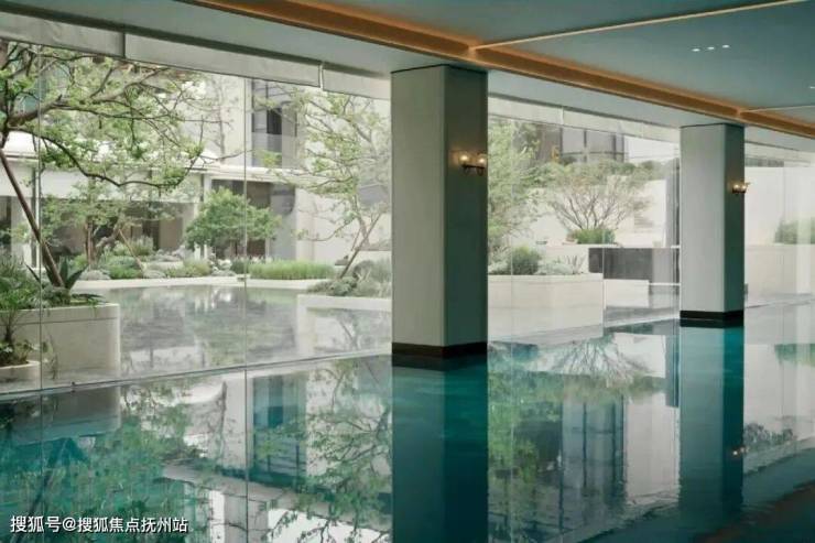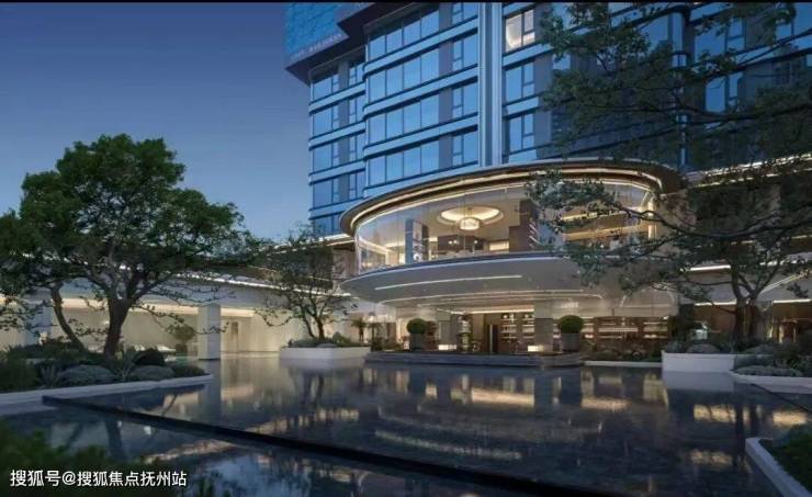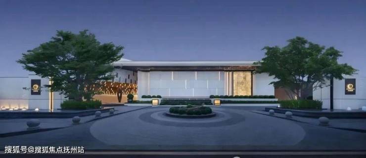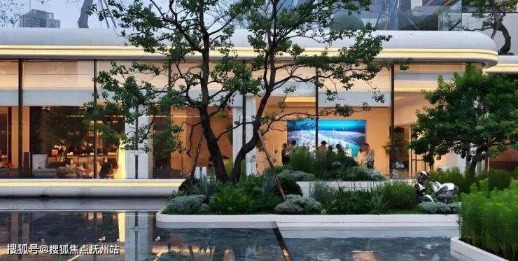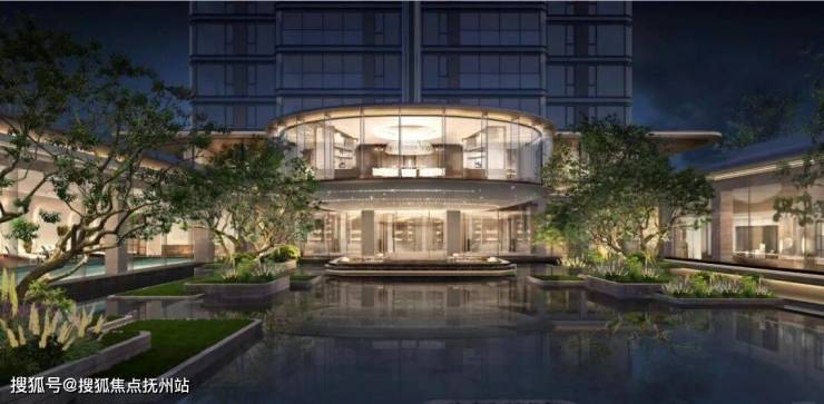 步入大门,眼前展开的是一座揽景平台,将庭院与会所的壮丽景观尽收眼底。中央庭院洋溢着艺术气息,珍贵的树木簇拥在如镜的水面上,水幕从观景台轻摆而下,宛如古琴流淌的音符,树与水之间的东方美学留白,与天空交相辉映。微风轻拂,水面荡起艺术的涟漪,这一幅禅意之景,透过全景玻璃窗,深深触动居住者的心灵。穿越“和鸣之境”的幽雅水景,上方悬浮着全景曲面玻璃的宴会大厅,水景树池散发着艺术气息,营造出宁静致远的归家氛围。
