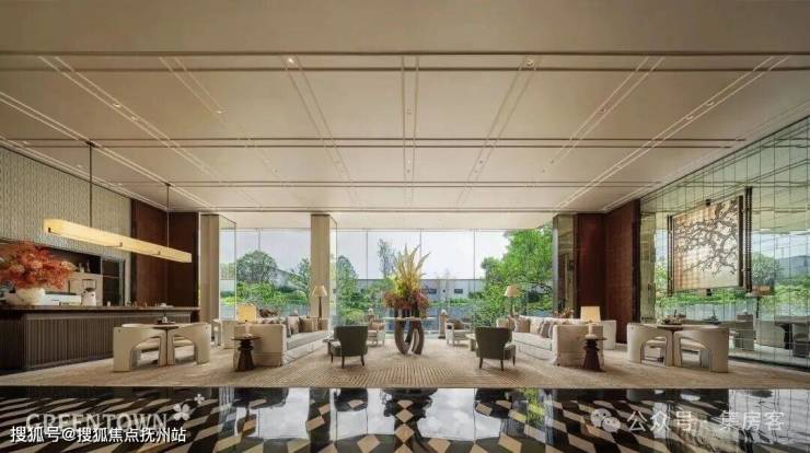 重点是作为一个整体抬高约3.7米的项目,地面层的生活馆、茶室,负一层的私宴厅、棋牌室、健身房、恒温泳池、瑜伽室,都朝向风景敞开。