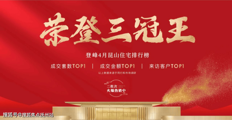 随后更是斩获昆山住宅「三冠王」称号——来访客户TOP1、成交套数TOP1及成交金额TOP1,领燃昆山楼市!(数据来源于同行及市场调研)