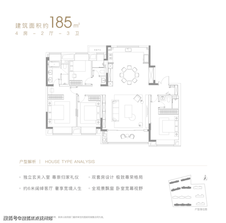 ① 建面约185㎡,这个亮点满满的王炸户型,大四房+四开间朝南+双套卧+三卫,可以说是二胎家庭的“梦中情房”!