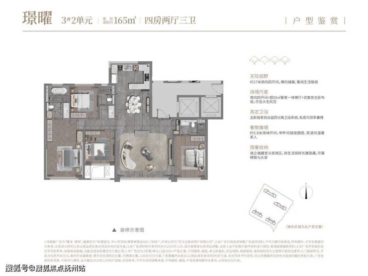 这是璟玥建面约165平四房三卫户型,容我先来和盘托出几个数据: