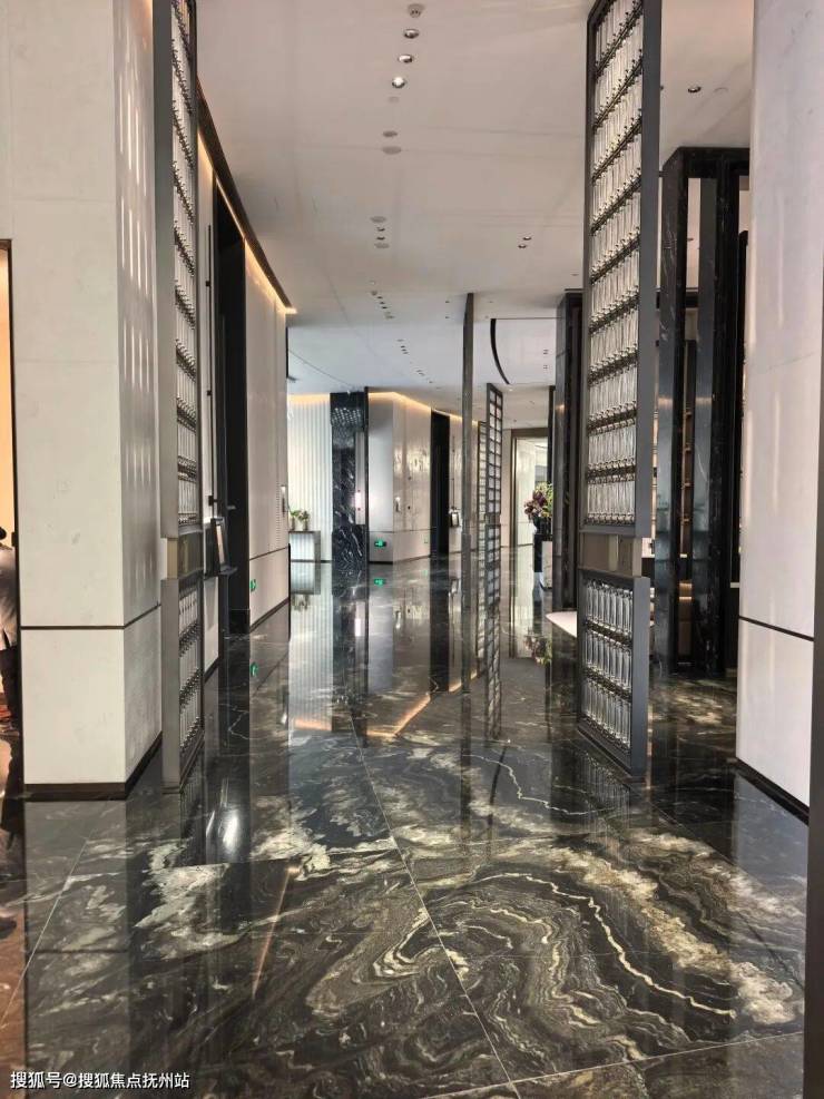 再看地下车库,先说结论吧,设计和用材在这个等级里属实一般。入户前厅采用石材地面,以及星空顶,通道及车位用的是地坪漆,顶部金属格栅,墙面及柱子铺贴岩板。出入口坡道采用环氧防滑坡道,墙面岩板,顶部金属板。在商业大平层项目中,这个配置确实偏低,而普通车位的配置就更低了,连灯光都是用的老式灯管,其实园区商业配套也定位不低,这种过于明显差异化确实显得有些太小气了,像EIC这么大的地下车库,不管是大平层,还是商业,及写字楼,整体都是一样的标准。