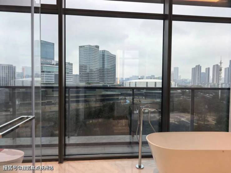 最后看室内,本次探访的是360方户型,两梯一户,独立电梯间,5房2厅6卫格局(含保姆房卫生间),U型阳台约50米长,净层高最高处约3.16米,最低处约2.81米。户型亮点非常明显,全屋套房设计,私密性和舒适性很好。真跑道型阳台,视野及采光无敌,可惜的是这一片区不是在江边,这么大的阳台好也就能看个河景。还有就是层高确实优秀,净层高3.16米,在大平层产品里也是属于比较顶的存在。