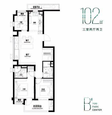 保利光合跃城营销中心:400-116-2990☎106㎡户型全明且三开间朝南,整个户型公区几乎没有面积浪费,且做出了大面宽,短进深的设计。这个户型无论是采光通风,还是空间感和尺度感都远超同价位其他竞品。客餐厨一体化的LDKB设计则将原本分离的空间整合在一起,提高了空间的使用效率,更促进了家人之间的互动和交流。