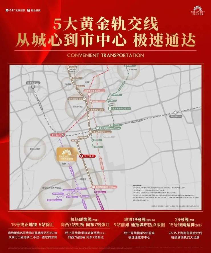 保利光合跃城营销中心:400-116-2990☎同时距离5号线颛桥站仅约1.8km!还有19号线的规划9站即可抵达前滩;23号线、15号线南延伸段也都正在建。整个项目受四条轨交覆盖,未来出行通勤都会非常便利。
