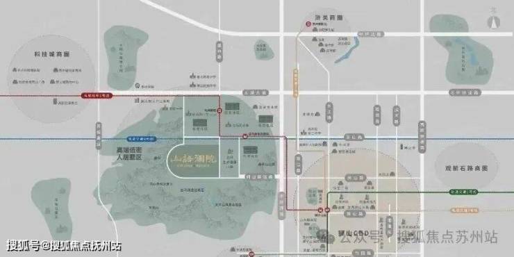 拥有着一隧道一环两轨,全维立体系的一个交通网络。 刚才我们讲到的河山隧道在我们项目南边,车程5.4公里,约10分钟左右就可以到达狮山CBD,向北的话1.8公里,约5分钟左右可以上太湖大道,向西的话可以到达科技城和绕城高速,向东的话我们直接可以连接中环西线畅达全城。市内外交通都很便捷。绿色出行公共交通的话,我们项目北面华山路有轨电车1号线,白马涧生态园站离我们项目较近,和苏州的地铁1号线,3号线都可以无缝换乘,同样畅达全程。同时还有政府正在规划的贯穿整个苏州东西两个方向的地铁9号线,未来也是从我们周边过的。