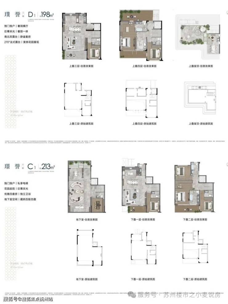 ·叠加——上叠 建面约198㎡、下叠 建面约213㎡;