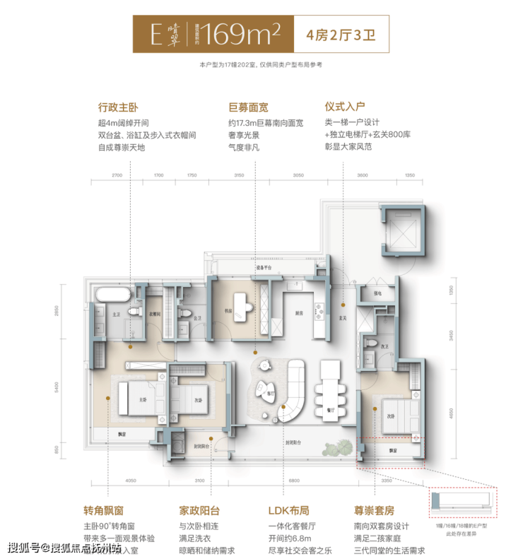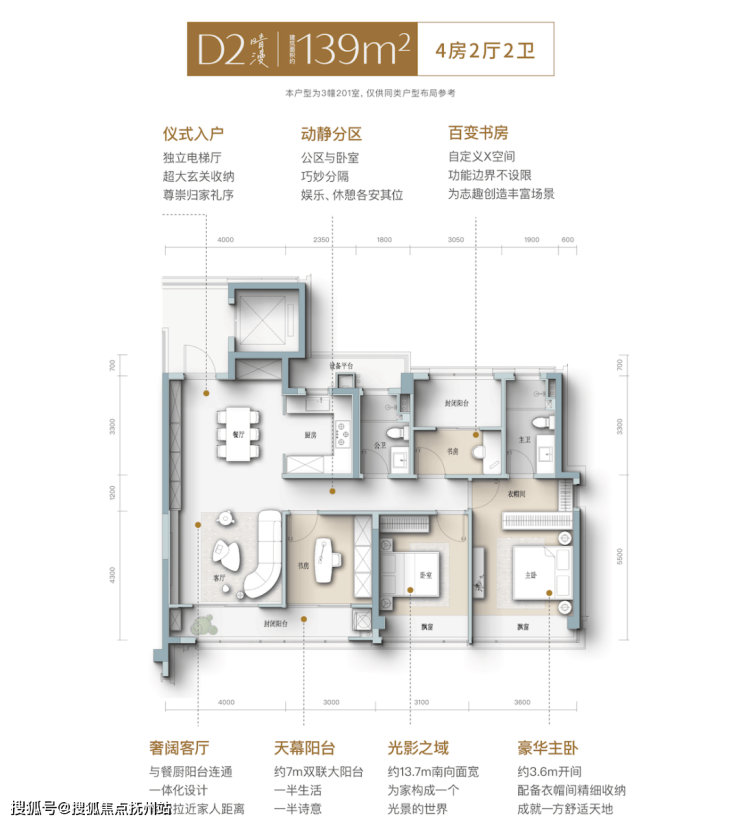 建面约105-110㎡三房入门主力户型,全屋设计了玄关“800库”、电视背景墙等;建面约125-139㎡四房改善户型,四开间朝南,南向面宽达约13.8米以上;约139㎡户型做到了各房间面宽均超3米,尺度舒适;建面约169㎡四房拥有约17.3米的巨幕南向面宽,部分房间可设计为双套房。