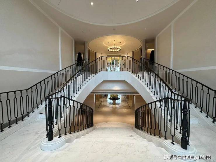 往下走的首层,这个楼梯就很经典的法式,讲究对称,以及,你穿梭于层间,会有许多庄重且有仪式感的圆弧序厅。