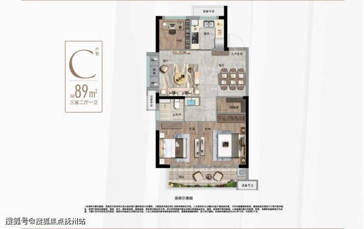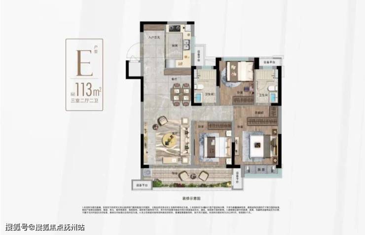 户型面积:75(2居)-89(3居)-105(3居)-113(3居) ㎡