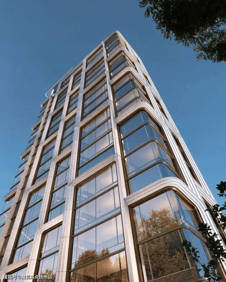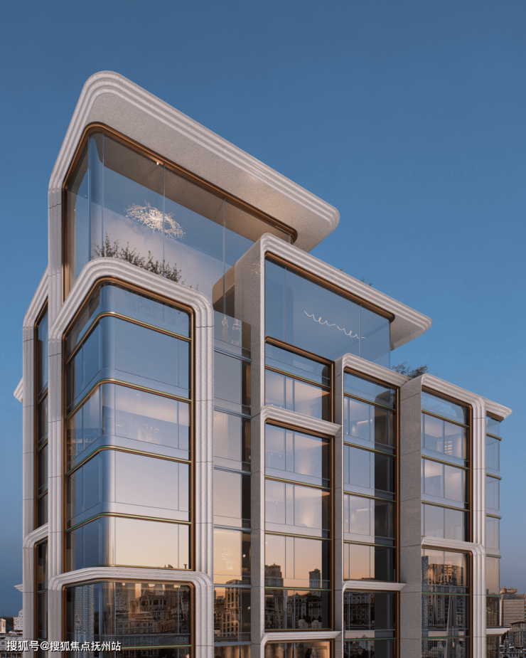 元序采用大面玻璃幕墙,通过搭配仿石铝板、釉面陶板等高端材质,组成“超流体屏”;将天然石材与高迪曲线完美搭配,虽为现代风,却无绝对直线棱角,自然形成艺术感极强的建筑单体。主入口以约百米宽、16米落差瀑布和钻石门厅设计,构建兼具张力与仪式感的城市界面。异形铝板与陶板在理性结构中赋予细腻肌理,弧形玻璃与灵动的水幕墙强化空间通透度与光影层次。