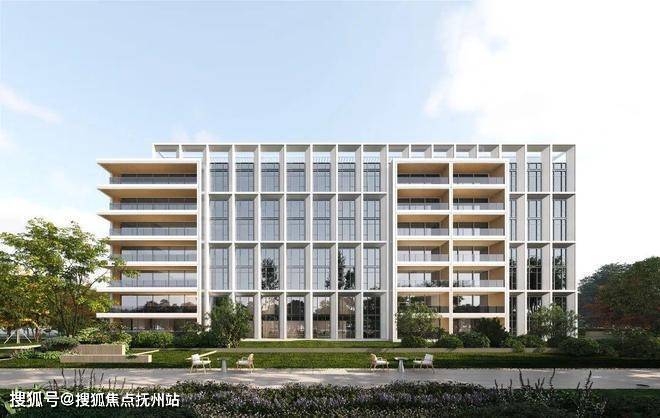 洋房层高3.2米,以银白色为主色调,通过体量错动、悬挑结构与垂直格栅设计,在保障每个单元的最佳景观视野+通透性的同时,实现了艺术性与私密性的完美平衡。