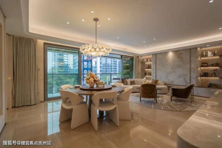 标志性的旋转楼梯、温润的石材质感,大大小小的器物呈现,给奢华的豪宅添了一份隐奢、松弛气质,归家转场无比丝滑,让人从“闹市”一秒回到私属的“闲适空间”。
