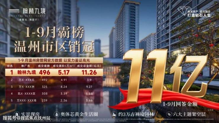 今年1—9月,建发旗下的翰林九境以496套的成交量,荣膺温州市区商品住宅销售冠军,总成交金额达11亿(数据来源为温州房管网)。
