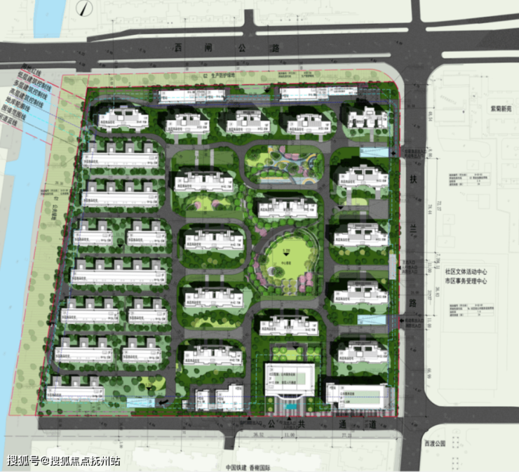 以江南人文精神为源点,打造两轴一环五进空间,江南礼序归家轴串联启迎盛礼、筑阙会友、归家华堂等5重礼制,尊崇归家;健康运动轴以24小时跑道为社区活力生活环,串联儿童乐园、长者康养、疗愈花园等10大生活场景,营造全龄全时的江南诗意生活