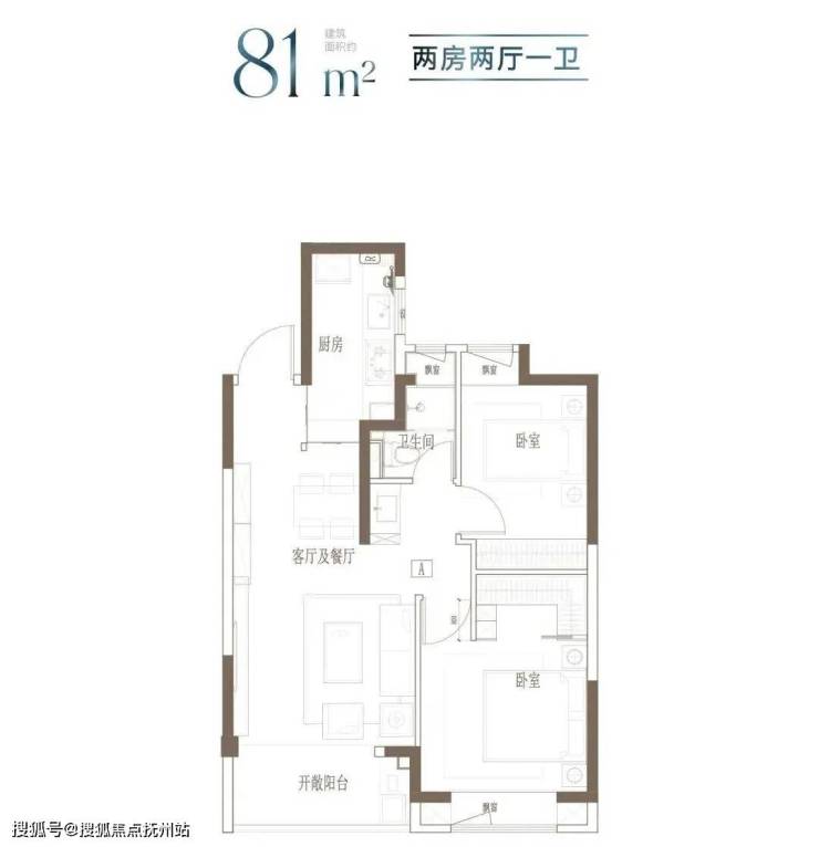 户型特点:小面积,低总价;2房朝南大面宽,舒适生活感受;卧室飘窗设计,释放更多公共空间。