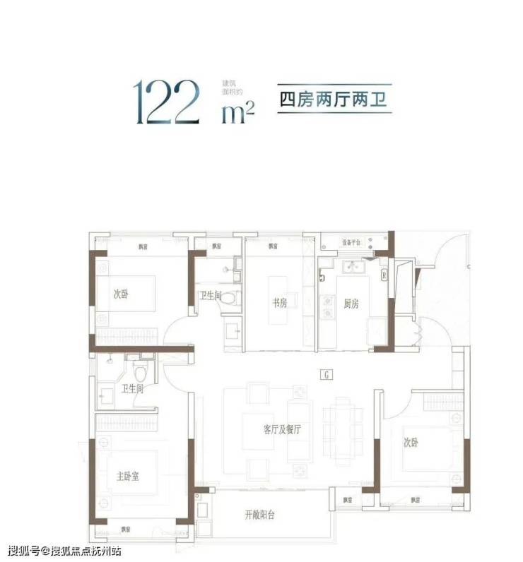 户型特点:宽境4房,拓宽空间尺度;大开间、进深短,通透采光;主卧独立卫浴,优雅随心的寝居感受。