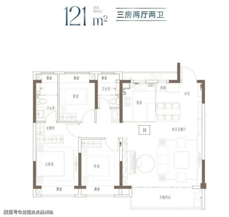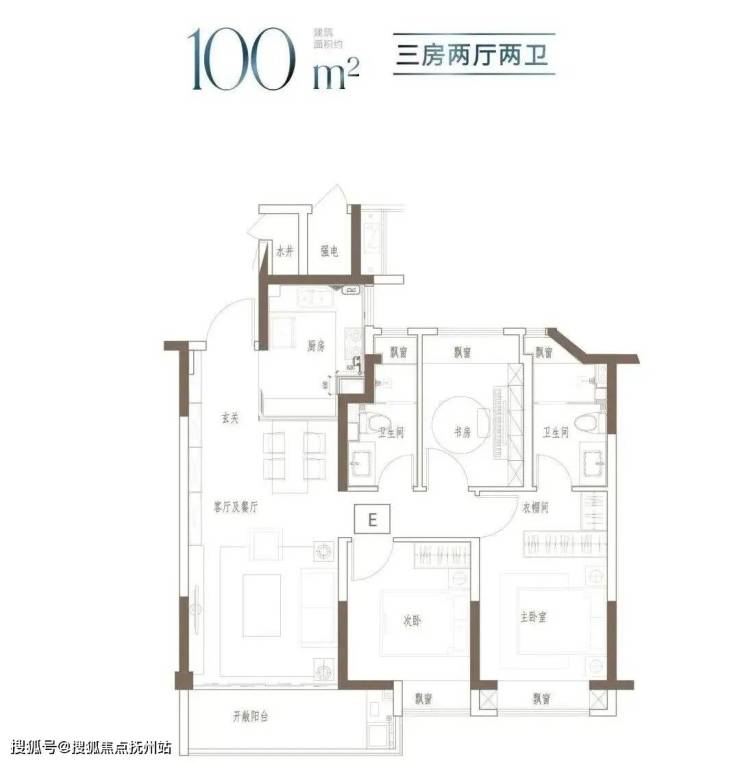 户型特点:3开间朝南,全屋阳光充足;L型厨房转角移门设计,最大化空间视野;四飘窗设计,通透空间享受;动静分区,亲密有度;套房式主卧,容纳私谧生活点滴;