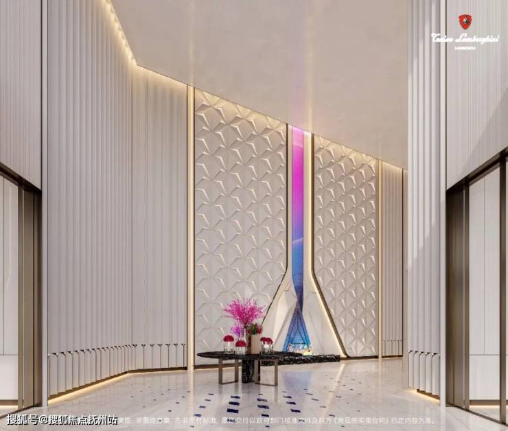 往里走,是两个大堂,一个是瑰郦中心大平层大堂,一个是兰博基尼酒店大堂。