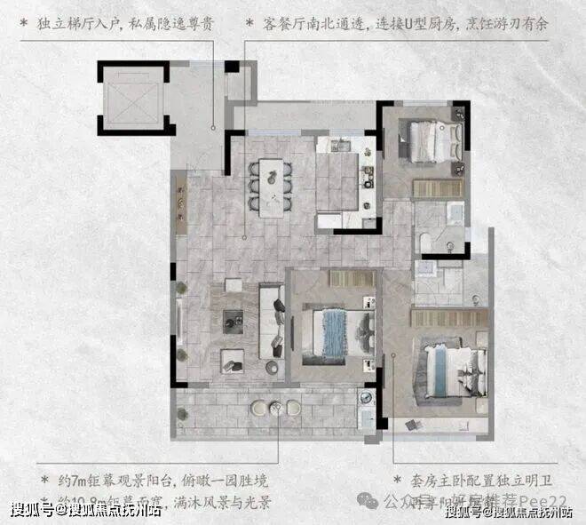 另一款明星户型,建面约149㎡则在观景面上做足功夫。