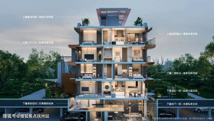上下叠错层创新 · 地下空间的美学觉醒 · 客厅的院落化设计