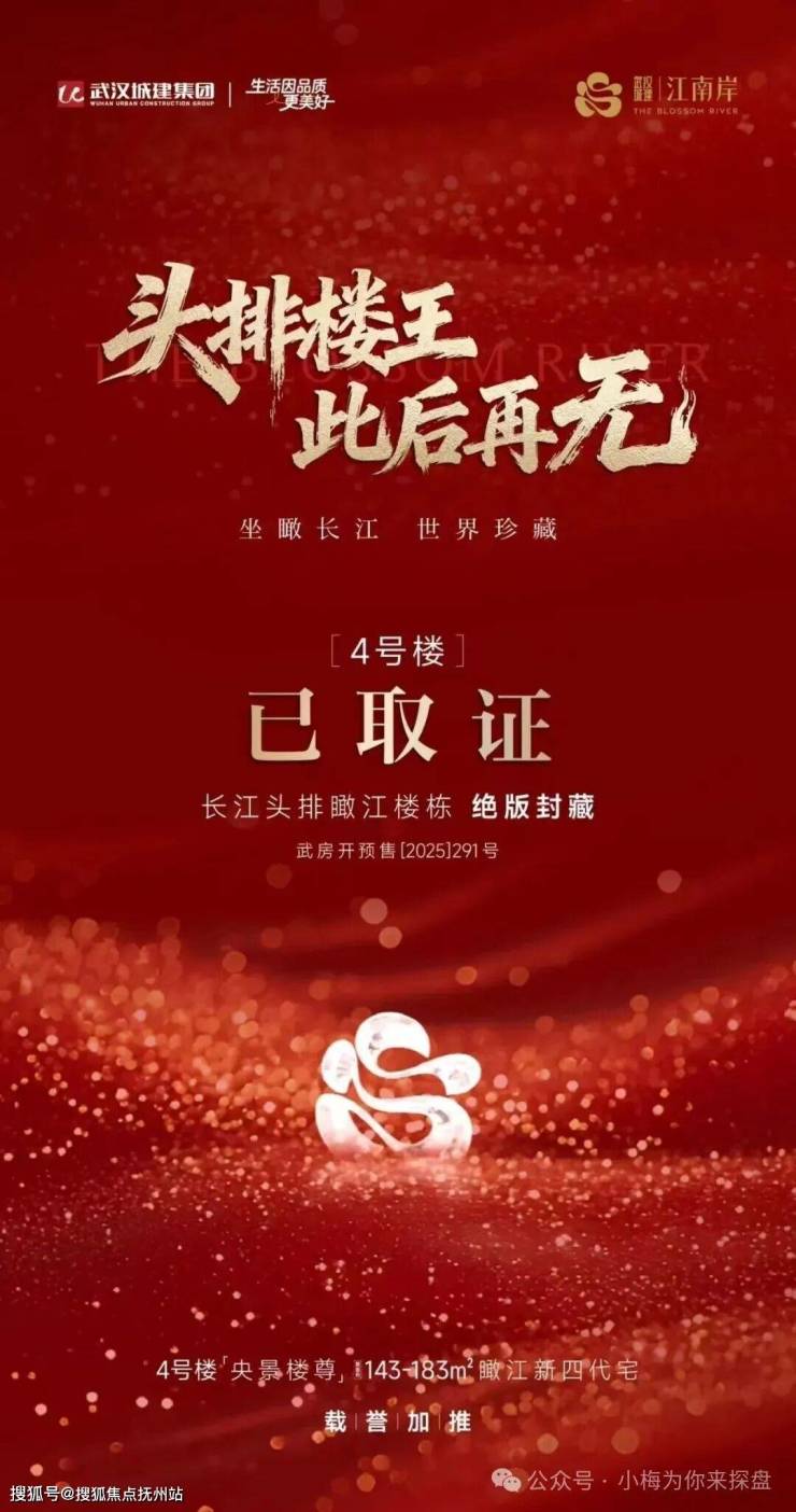 【城建江南岸】江景楼王4号楼加推,备受期待的江景楼王C位。[4号楼]低密高层,总层31层,2梯2户面积段为143/183。此次推出的房源占据小区核心位置,拥有无遮挡一线江景视野,超宽楼间距,该项目最后一栋头排看江楼栋。该项目一共就6栋楼,之前加推有1,2,3,6号楼。目前就是4栋和5栋没有开盘。之前了解这个项目都知道1,3,4,6号楼看江景观效果要好过2号楼和5号楼。目前加推4号楼绝对算上小区C位。如果对项目感兴趣可以联系小梅,具体项目信息小梅可以一对一沟通。